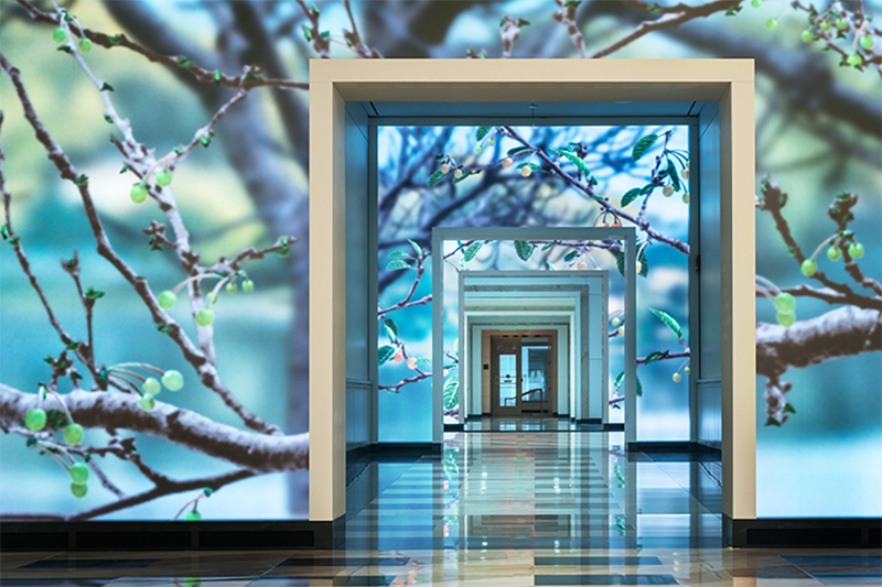Generative audio software creates an ever-evolving sonic environment in relation to pedestrians in the lobby.
